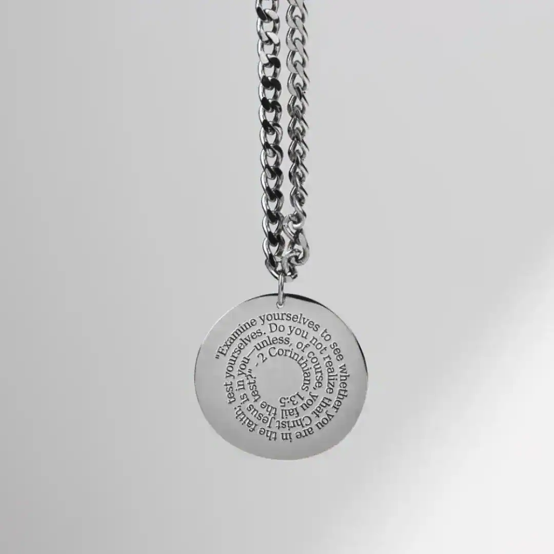 Our Christian Personalized Initial ‘X’ Pendant is a beautifully crafted piece, perfect for anyone whose name starts with ‘X’. The front of the pendant features a stunningly engraved initial ‘X’, showcasing elegance and faith. The back of the pendant includes a pre-engraved inspirational quote from 2 Corinthians 13:5: “Examine yourselves to see whether you are in the faith; test yourselves. Do you not realize that Christ Jesus is in you—unless, of course, you fail the test?” Additionally, you have the option to customize the back with your own message. Choose between spiral engraving, where the text spirals outward, or inline engraving, with text arranged in straight lines. This makes it a perfect, personalized gift for any occasion and a pendant for people who’s name begins with X