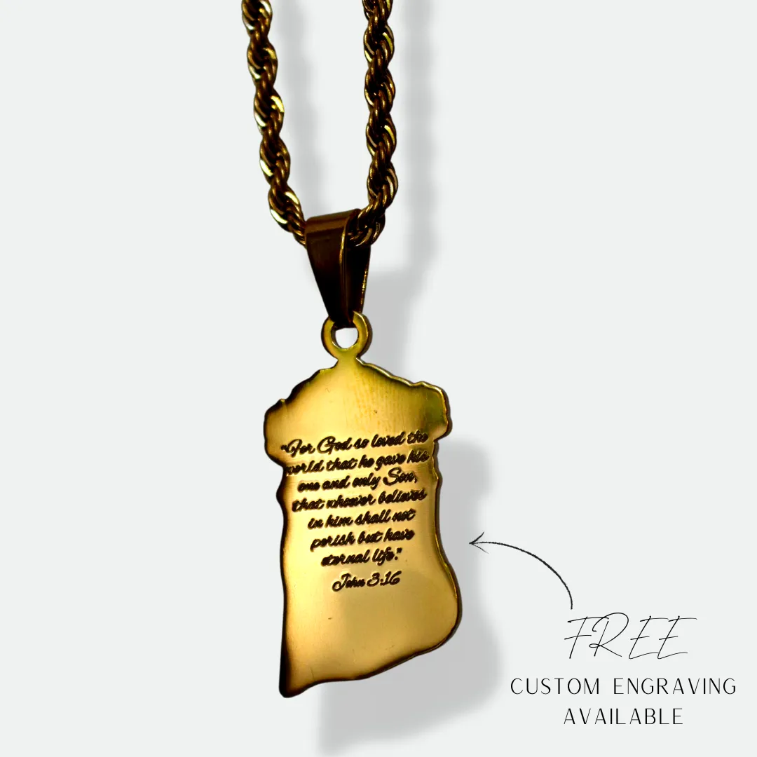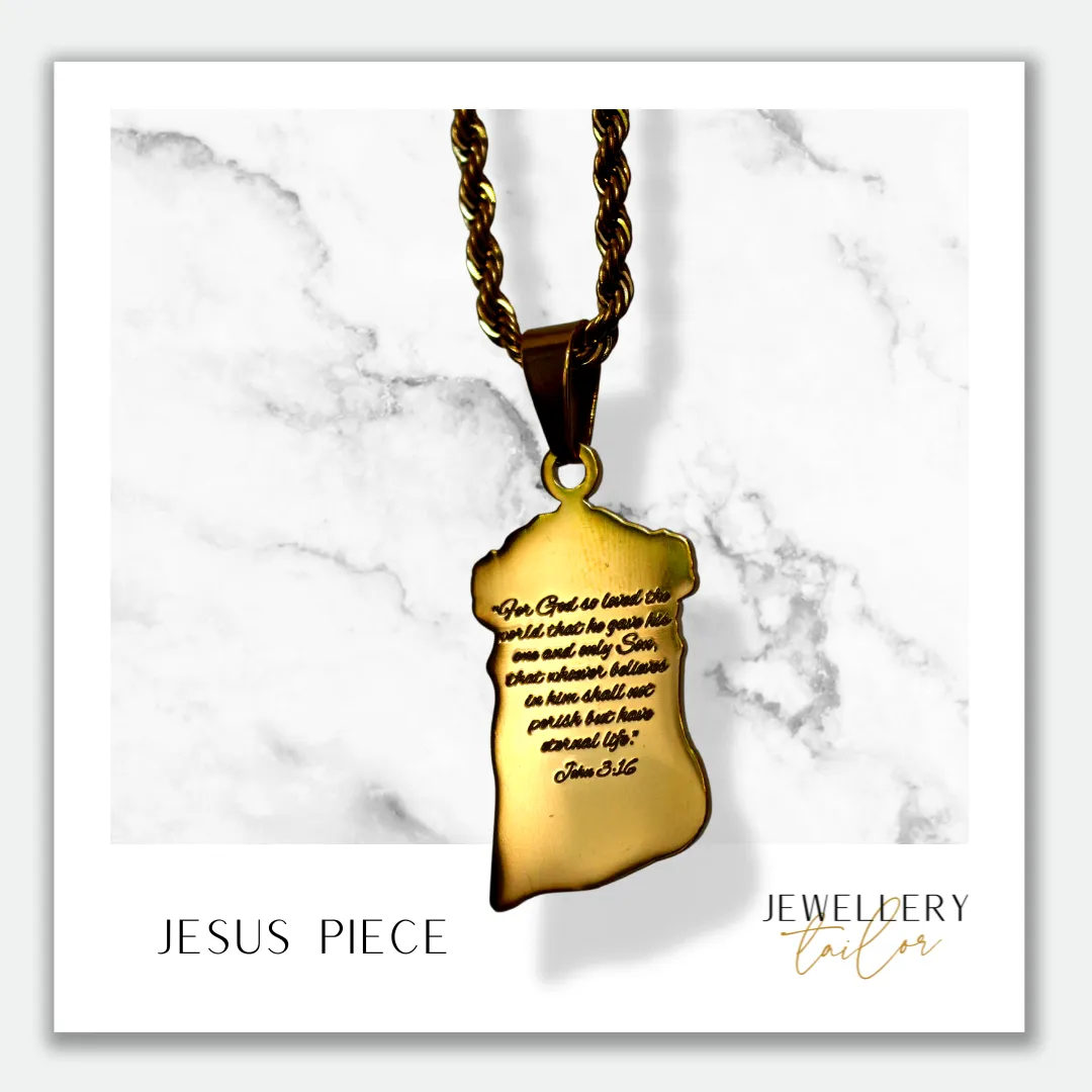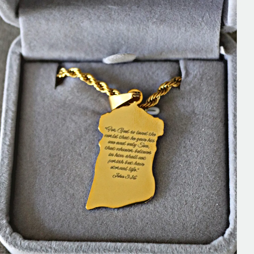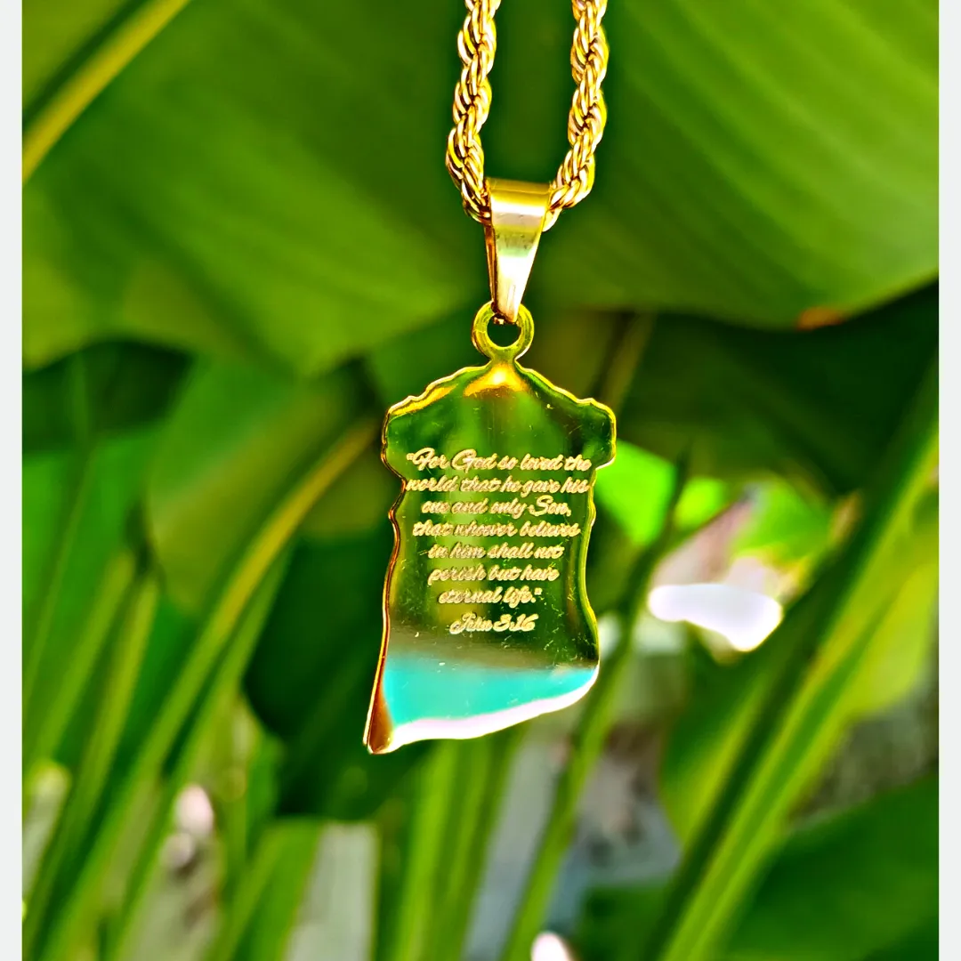 This 2-sided pendant features a divine depiction of Jesus Christ on the front, and on the back, it bears the powerful scripture, “For God so loved the world, that he gave his only begotten Son, that whoever believeth in him should not perish, but have everlasting life.” – John 3:16.